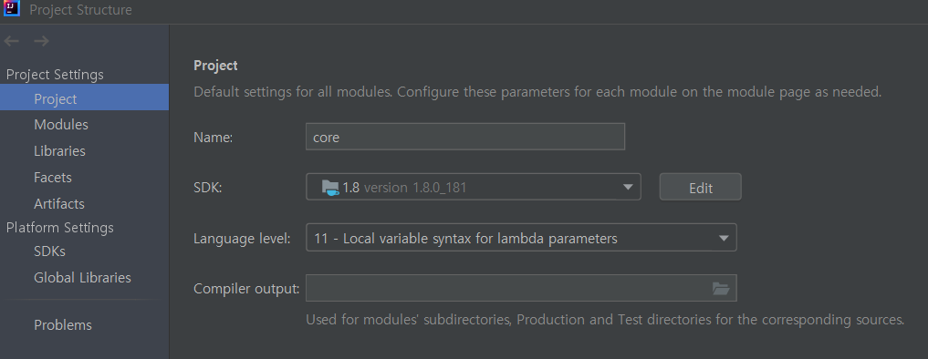 Ctrl + Alt + Shift + S 단축키를 클릭하여 Project Structure에 들어간다.