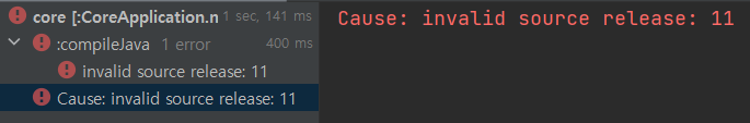 프로젝트 자바 버전과 내 컴퓨터에 설정된 java 버전이 맞지 않아서 발생하는 오류이다.