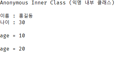 System.out.println("Anonymous Inner Class (익명 내부 클래스)\n");