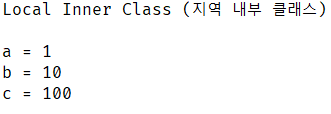 System.out.println("Local Inner Class (지역 내부 클래스)\n");