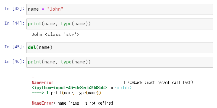 생성되지 않은 변수를 삭제하려고 하면 NameError가 발생한다.