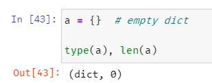 빈 dict는 {} 로 만든다.