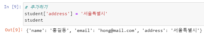 dict[새로운 key] = value를 하면 새로운 요소가 추가된다.