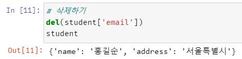 dict에서 요소를 삭제하려면 del() 함수를 사용한다.