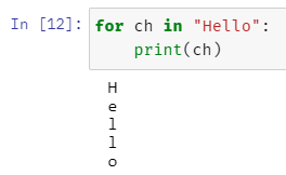 for 변수 in 문자열