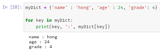 for 변수 in dict