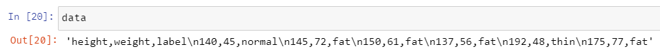 In [15]에서 데이터를 처음 읽을 때 개행이 안 된 상태로 존재했기 때문에 \n을 이용해 데이터를 한 줄씩 잘라준다.
